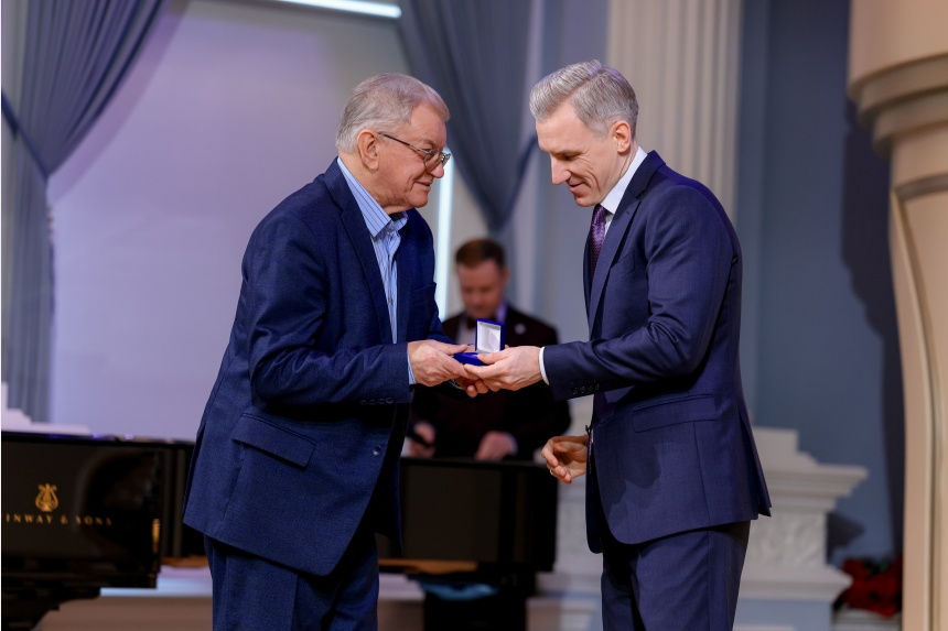 вчераНа прошлой неделе в Смоленске состоялось торжественное мероприятие, посвященное Дню работника культуры, на котором губернатор Василий Анохин вручил знаки «Почетный работник культуры Смоленской области». Среди награжденных – преподаватель Детской школы искусств имени М.А. Балакирева Михаил Фёдорович Чмель.